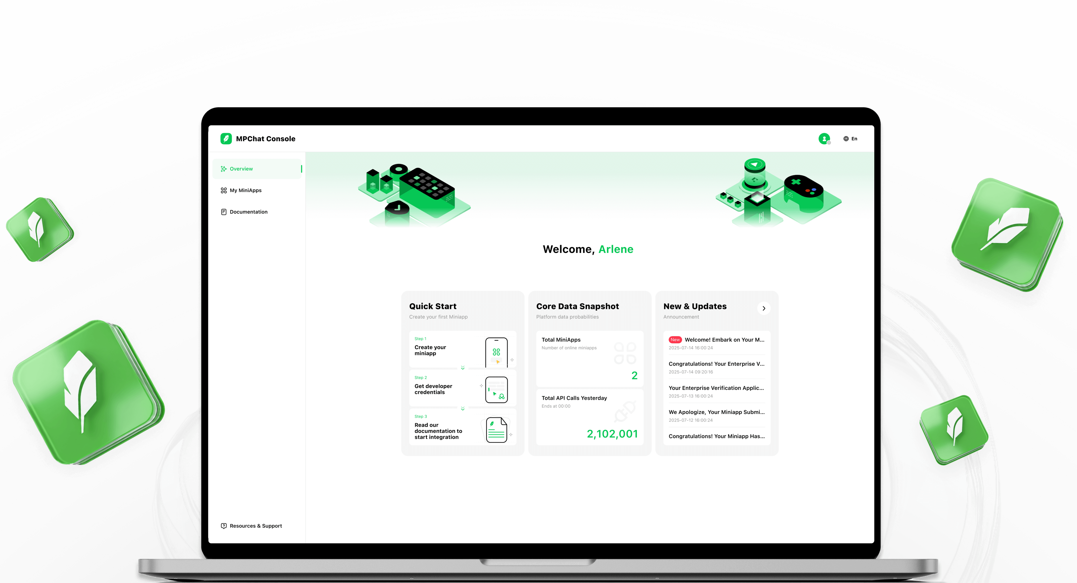 Start coding with our APIs and SDKs to bring your ideas to MPChat.
