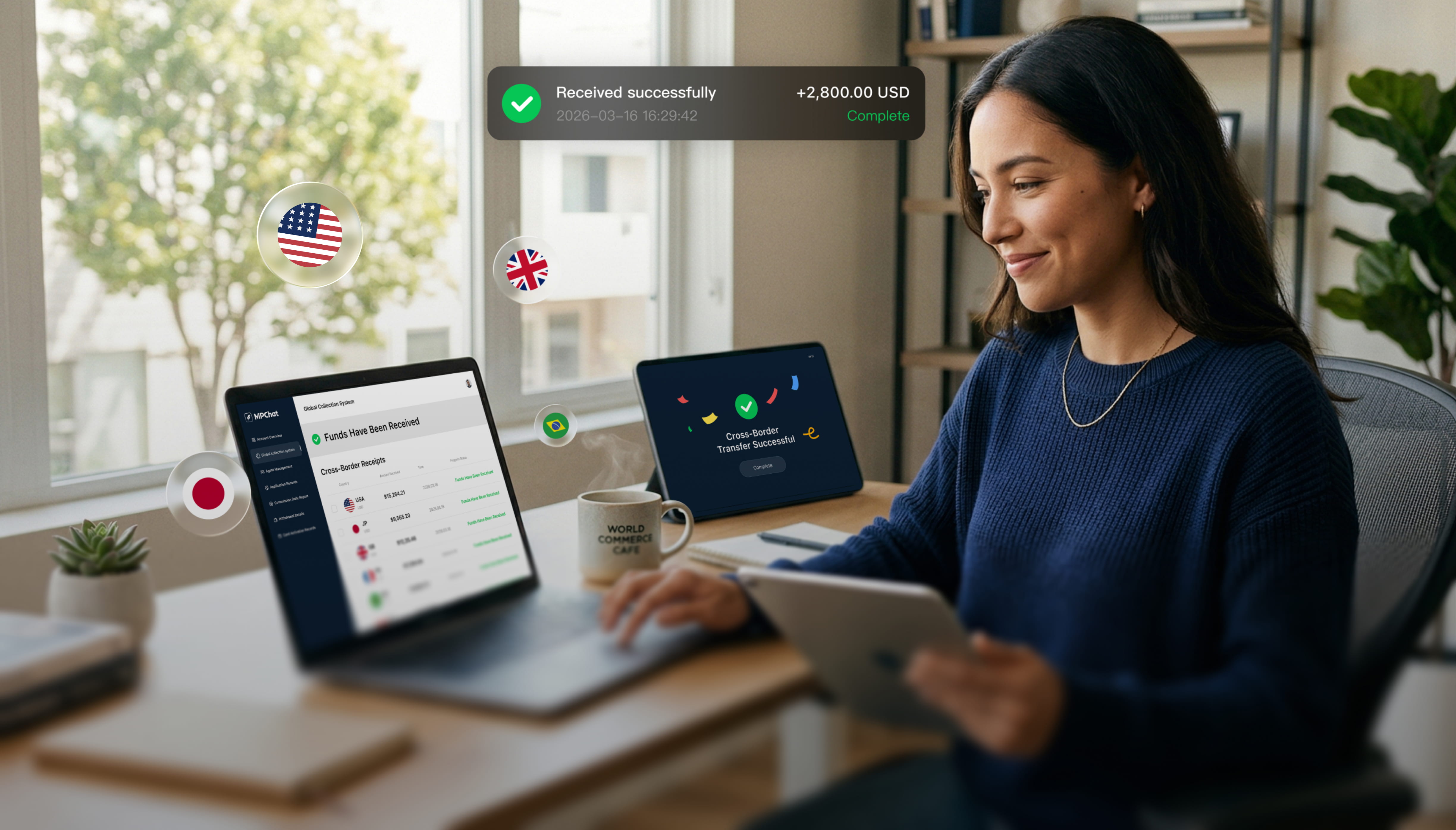 在 MPChat 平台的单一仪表板中查看和管理您的全球资金流。