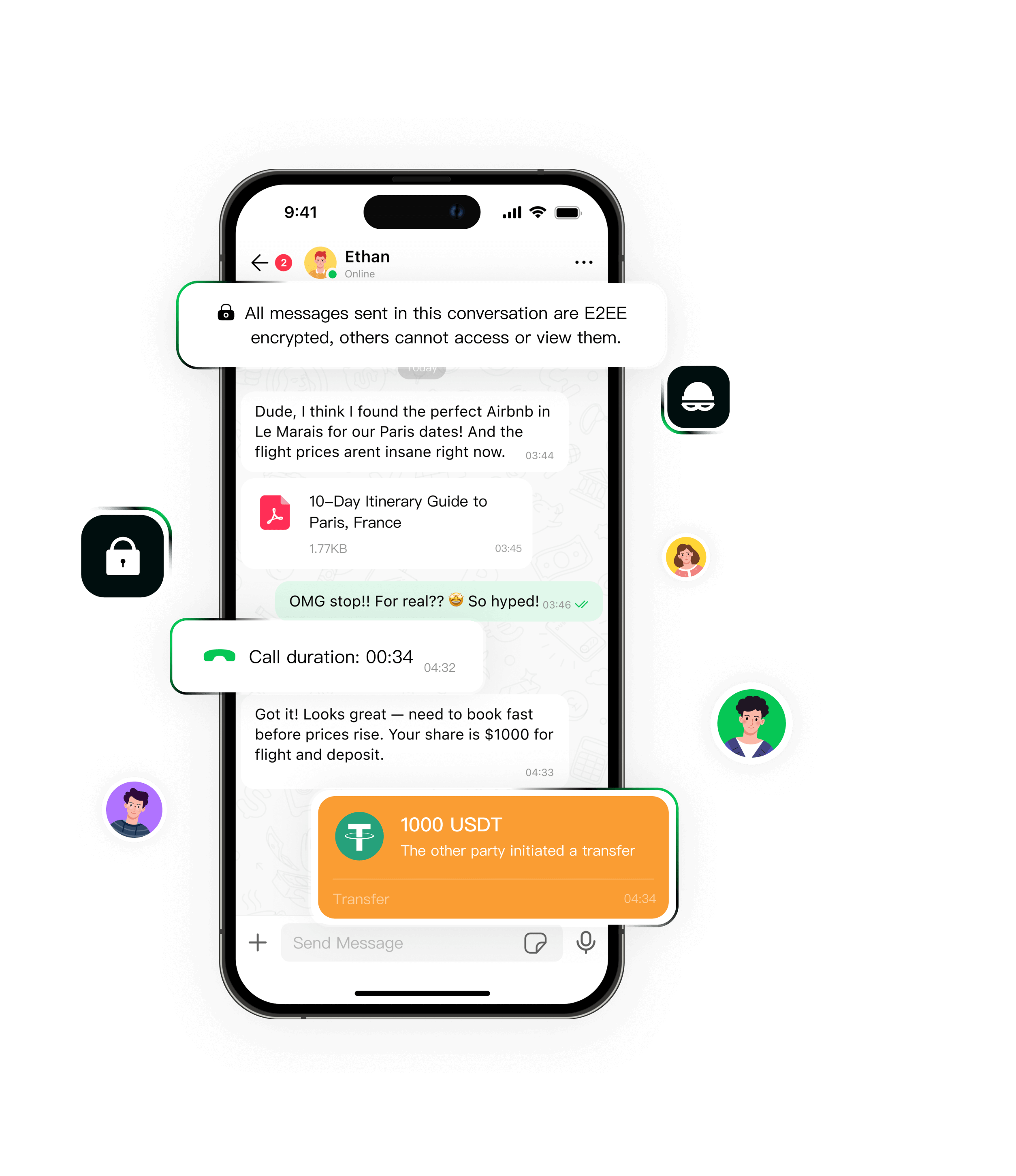通過 MP Chat 分享的每一次聊天、通話和文件默認都受到行業領先的端到端加密保護。